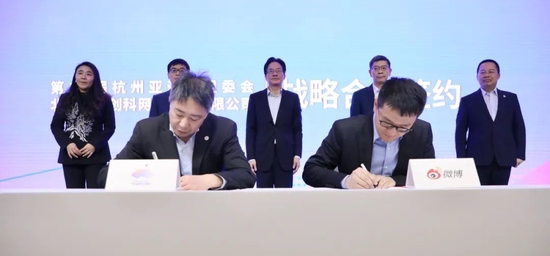 3月2日,“助力亚运@精彩”第19届杭州亚运会组委会与北京微梦创科蚁集本事有限公司(以下简称“微博”)政策互助签约典礼在杭州举行。两边将联袂提高杭州亚运会影响力,多维度为网友打造精彩的酬酢不雅赛体验。杭州亚组委施行布告长、杭州市副市长陈卫强出席签约典礼。
